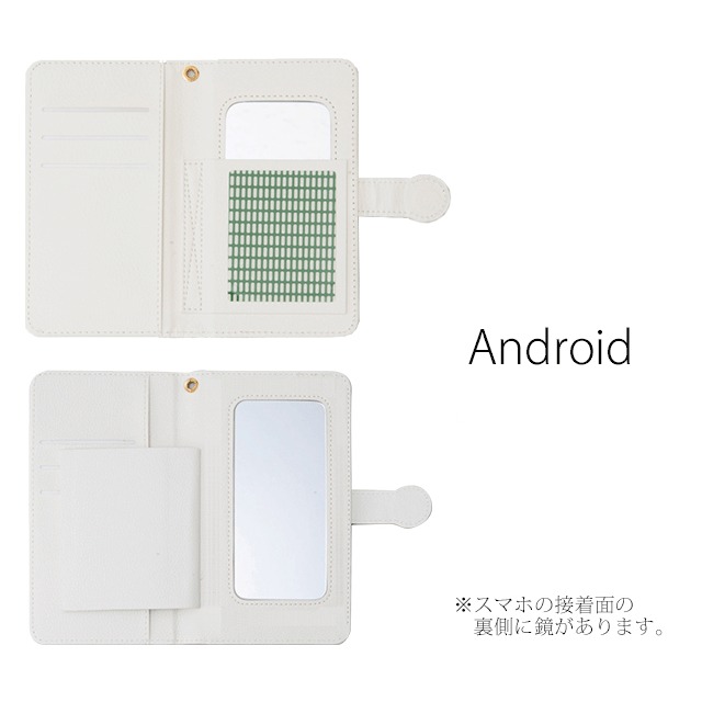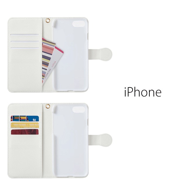 iPhoneとAndroidで仕様が違いますが、内側は白でポケットが付いていて、留め具はマグネットになっていて使いやすいケースです。